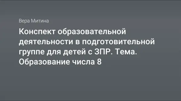 Цель занятия: уточнение представления детей об образовании числа 8. Дети знакомятся с образованием числа 8 на основе сравнения двух групп предметов, учатся соотносить число 8 с количеством и цифрой. Для закрепления цифры дети находят игрушки и предметы, которые похожи на цифру 8, конструируют её из Лего-конструктора, проволоки, магнитного круглого конструктора, колечек и пуговиц.