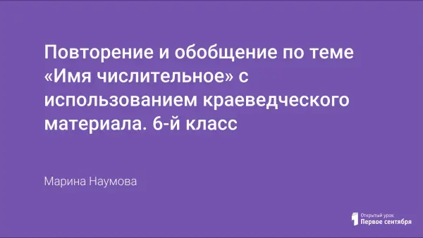 Данный урок русского языка в 6-м классе является обобщающим по теме «Имя числительное». На нём систематизируется теоретический материал по теме, повторяется правописание числительных. В качестве текстов учитель использует краеведческий материал об истории Углича. Форма урока – заочная экскурсия – хорошо подходит для данного типа урока. В роли экскурсоводов выступают как учитель, так и дети.