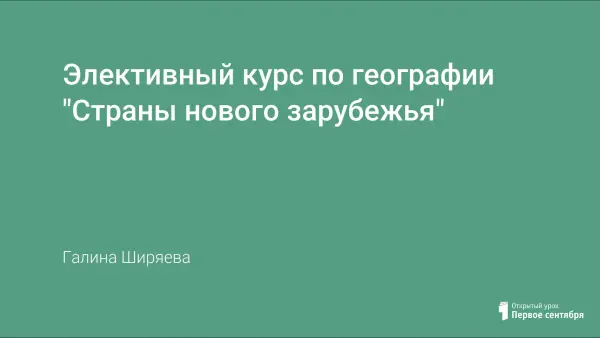 Содержание элективного курса позволяет расширить и углубить знания учащихся о странах нового зарубежья: особенностях географического положения, демографическом положении, хозяйстве. Курс «Страны нового зарубежья», представляется необходимым, так как этой теме в обязательной программе географии 9-го класса уделяется всего 1 час, а этого явно недостаточно для формирования представления о странах-соседях России и о взаимоотношениях России с новыми независимыми государствами.