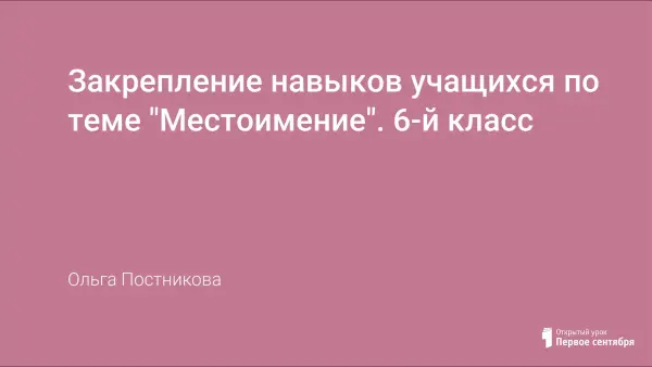 На занятии закрепляются навыки учащихся, приобретенные за время изучения темы «Местоимение».