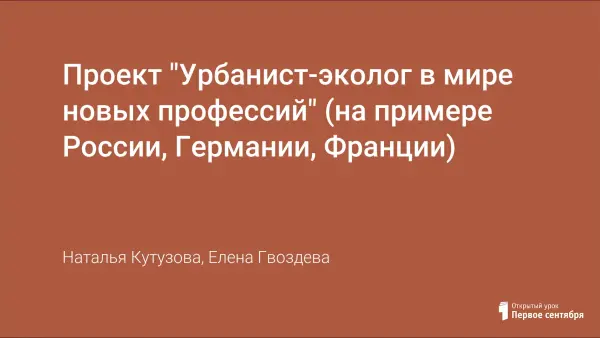Проект "Урбанист-эколог в мире новых профессий" (на примере России, Германии, Франции)