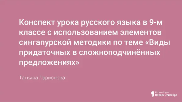 Конспект урока русского языка в 9-м классе с использованием элементов сингапурской методики по теме «Виды придаточных в сложноподчинённых предложениях»