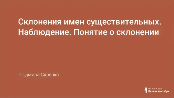 При проведении урока учитывались уже имеющиеся у ребят знания и умения: знания о морфологических признаках имен существительных, начальной форме, умение находить имена существительные, определять род, падеж, число; умение изменять существительные по падежам. Урок готовит учащихся к усвоению сложной темы: правописание безударных окончаний имён существительных.