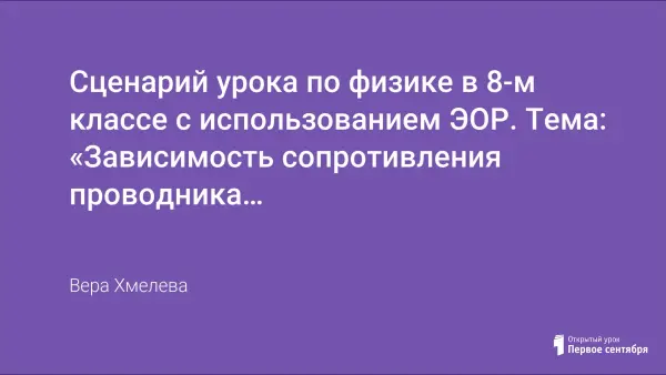 Сценарий урока по физике в 8-м классе с использованием ЭОР. Тема: «Зависимость сопротивления проводника от его длины, площади поперечного сечения и удельного сопротивления материала»
