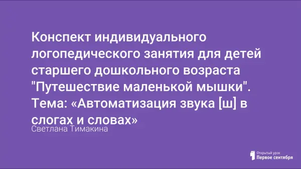 Цель занятия: закрепление правильного произношения звука [ш] в слогах и словах.