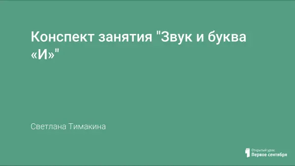 Цель урока: знакомство с гласным звуком [и] и буквой "И". Задачи: развивать фонематическое восприятие, учить выделять звук /и/ среди других звуков, в слогах, в словах. Упражнять в определении позиции звука [и] в слове (начале, середине, конце). Познакомить с буквой "И", учить соотносить звук и букву. Развивать память, восприятие, внимание, мелкую моторику.