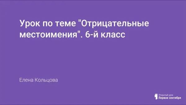 Материалы к уроку «Отрицательные местоимения» включают в себя технологическую карту и план-конспект урока. Урок разработан с применением технологии проблемного диалога, то есть соответствует требованиям ФГОС. Использование данной технологии и разнообразных форм и средств обучения позволяет обеспечить качественное усвоение материала, развитие интеллекта и творческих способностей школьников. Цель урока: формирование способов действия при написании отрицательных местоимений.