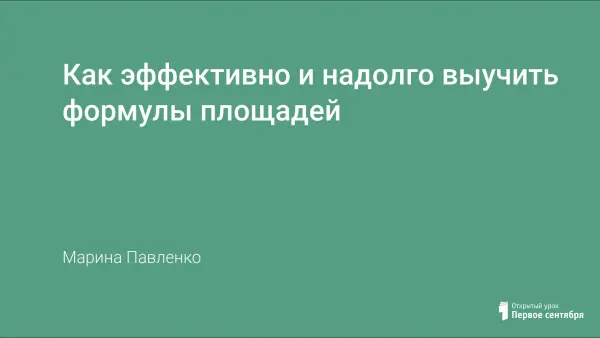 Мышление и восприятие информации современного школьника зачастую клиповое – то есть, сегодня изучаем, применяем, помним, знаем. Написали контрольную работу, сдали зачет, получили отметку, забыли. В статье рассматриваются приемы, с помощью которых, используя 8–10 минут на каждом уроке возможно эффективно, долгосрочно и прочно изучить формулы площадей, научиться их применять при решении простейших задач любому, даже самому слабому ученику.