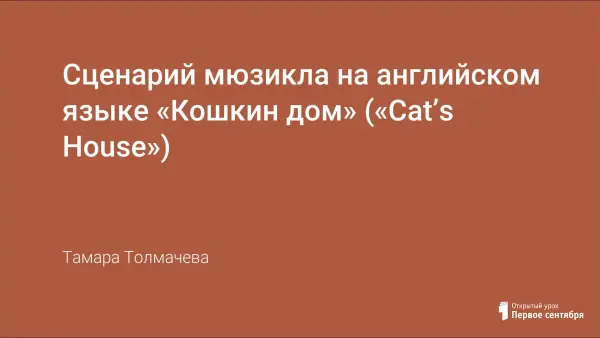 Представлен сценарий мюзикла на английском языке «Кошкин дом» для учащихся 4-х класов.