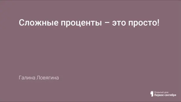 Цель урока: обобщить и углубить знания, необходимые для решения широкого круга практических задач на процентные вычисления, закрепить алгоритм решения задач на простые проценты и изучить алгоритм решения задач на проценты с помощью формул «сложных процентов». Понимание процентов и умение производить процентные расчеты в настоящее время необходимы каждому человеку: прикладное значение этой темы очень велико и затрагивает практически все сферы нашей жизни. Сведения о простых и сложных процентах, которые сами по себе имеют большую практическую значимость, являются достаточно благоприятным материалом для применения знаний, полученных на уроках математики. Текстовые задачи на проценты включены в материалы государственной итоговой аттестации за курс основной школы. Предлагаемый урок ориентирует учащихся на закрепление навыка решения практических задач на простые и сложные проценты, на формирование рационального решение задач на проценты с помощью применения формул «сложных процентов».