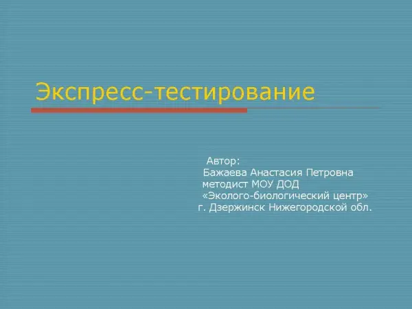 Разработка предназначена для учителей биологии и педагогов дополнительного образования, работающих по программам эколого-биологической направленности. В ней рассматривается экспресс-тестирование, которое можно использовать для контроля результатов обучения на уроке и как игровой элемент во внеурочной деятельности.