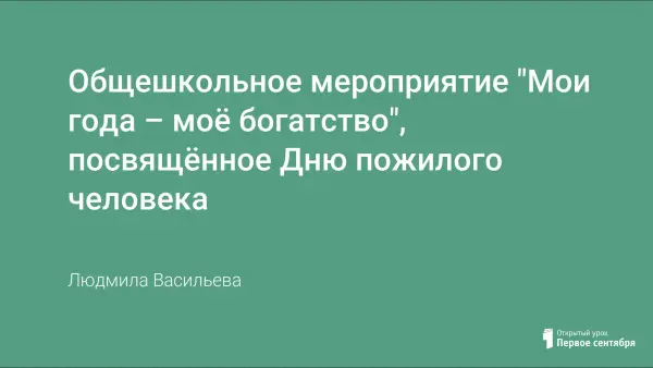 Представлен сценарий общешкольного мероприятия "Мои года – моё богатство", посвящённое Дню пожилого человека.
