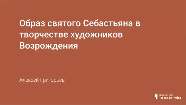 Образ святого Себастьяна не есть образ конкретного человека. Это отношение людей к человеку того времени, идеал, гармония, всё то, к чему должны стремиться люди, невзирая на любые препятствия и трудности на пути, не уступая никаким жизненным перипетиям. Поэтому через образ святого Себастьяна видится воспитание и формирование нравственного человека.