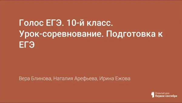 Голос ЕГЭ. 10-й класс. Урок-соревнование. Подготовка к ЕГЭ