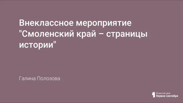 Мероприятие основано на краеведческом материале, знакомит учащихся с историей областного города Смоленск и служит воспитанию патриотов своей страны. В результате данного мероприятия расширяется кругозор учащихся, воспитывается любовь к родному городу и его историческому прошлому, развивается интерес к познанию нового. Материал можно использовать на уроках окружающего мира, азбуки Смоленского края, а также на внеклассных мероприятиях по изучению истории родного края.