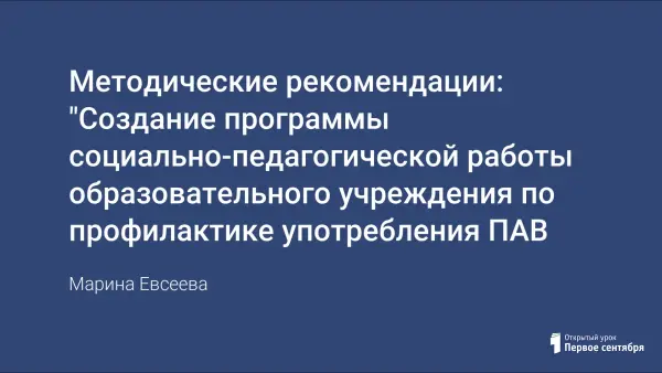 Методические рекомендации ориентированы на организацию или совершенствование работы образовательного учреждения по предупреждению и профилактике употребления ПАВ. Основой данной деятельности является принцип междисциплинарного взаимодействия, основанный на согласовании общих усилий всех участников образовательного процесса. Рекомендации помогут выстроить содержание работы с учетом социальных ценностей поведения, общения, проведения досуга для учащихся конкретного образовательного учреждения.