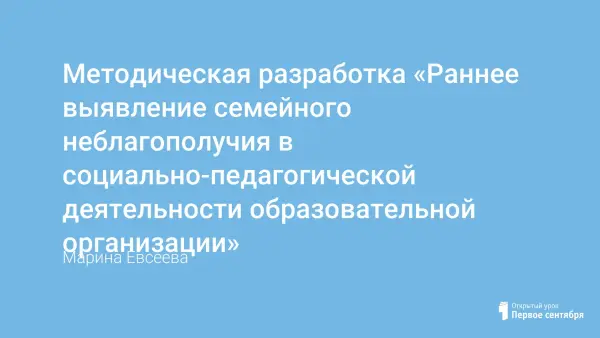 В работе описаны факторы риска семейного неблагополучия, алгоритм его выявления, формы и методы диагностики, система межведомственного взаимодействия в решении проблем ребенка и семьи. В соответствии с российским законодательством представлены виды ответственности лиц, нарушающих права и интересы детей, а также содержание работы социального педагога образовательной организации по раннему выявлению случаев семейного неблагополучия.