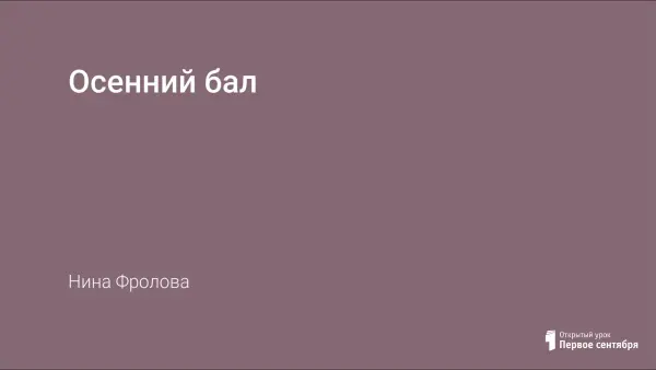 «Осенний бал» - мероприятие для старшеклассников. Это не обычный концерт с объявлением номеров, а единое, цельное представление, условно разделённое на «кадры». Ведущие не только объявляют «кадры», но и являются непосредственными исполнителями. Части представления в основном небольшие, лёгкие для исполнения и доступные для их воплощения на сцене. Для них несложно подготовить костюмы, сделать декорации.