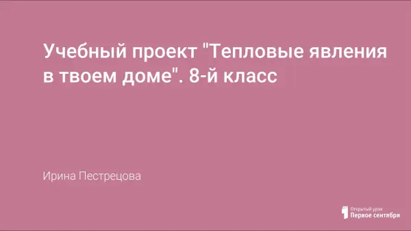 Учебный проект изучает теплопередачу как способ изменения внутренней энергии тела. После изучения базовых теоретических знаний каждая группа выполняет практические работы. Практическую часть проекта учащиеся завершают дома.