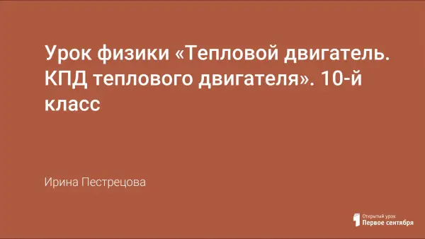 Цель урока: знакомство с устройством и принципом действия тепловых двигателей. Урок физики содержит элементы проблемного обучения, помогает в подготовке к сдаче ЕГЭ.