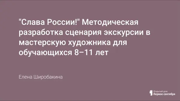 Методическая разработка сценария экскурсии в мастерскую художника направлена на формирование патриотических чувств у детей 8-11-и лет путем приобщения к лучшим образцам отечественного искусства, способом импровизированной «экскурсии».