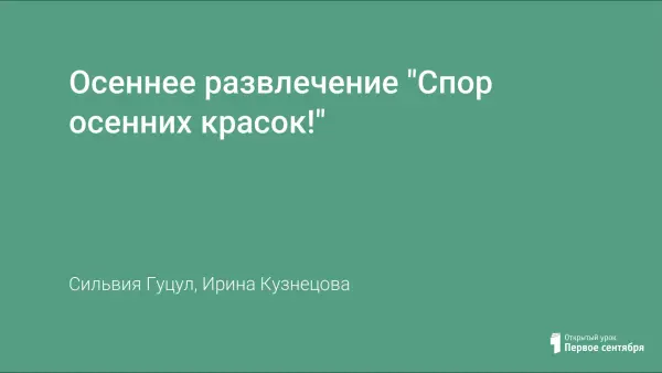 В статье содержится авторская программа осеннего развлечения по теме «Спор осенних красок» для детей старшей группы. В программе развлечения содержатся упражнения с музыкальным сопровождением, что способствует художественно-эстетическому развитию ребенка. В процессе участия дети знакомятся с различными видами искусств. Праздник развивает эмоции, поднимает настроение и жизненный тонус. Программа развлечения построена на активном участии ребенка на протяжении всего мероприятия.