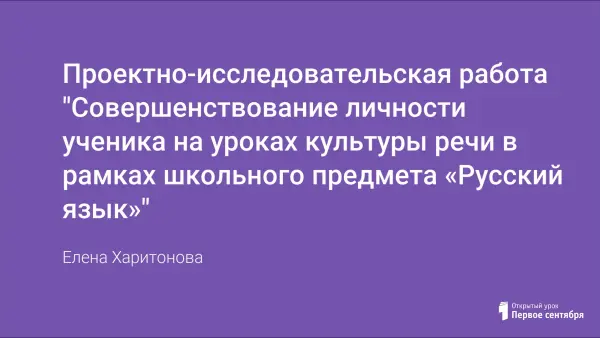 Цель работы – доказать, что уроки русского языка, посвященные культуре речи, т.е. нормам современного русского литературного языка, в совокупности с современными технологиями и эвристическими методами познания помогают сформировать личность ученика со способностью к самооценке, саморазвитию, самосовершенствованию.
