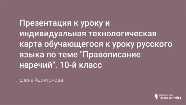 представлена индивидуальная технологическая карта обучающегося с заданиями к уроку русского языка по теме "Правописание наречий".