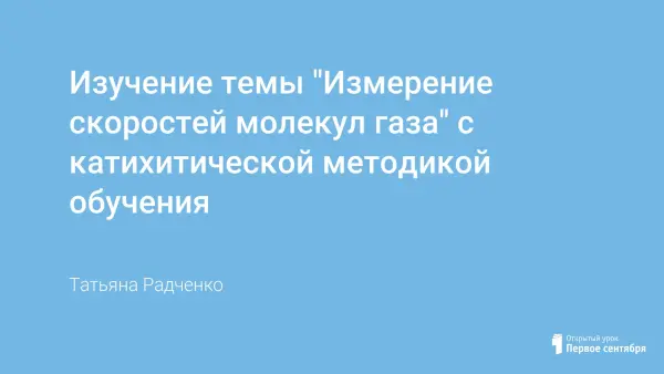Рассмотрена тема «Измерение скоростей молекул газа» в общей структуре изучаемого раздела и его непосредственном изложении в катихитическом методе обучения. Вопросно-ответная форма помогает усвоить необходимые элементы или общие положения темы.