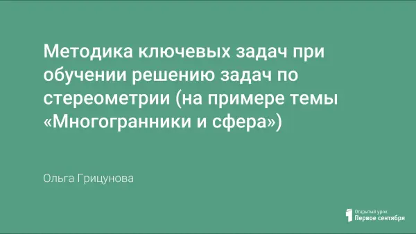 В последнее время резко сокращается количество часов на изучение математики в школе, а требования (с том числе на ЕГЭ) и объем изучаемого материала увеличивается. Учитель должен не только сообщать учащимся соответствующий материал, но и научить их владеть предметом. Возникает проблема: как научить ребят за относительно небольшое время решать задачи. Я рассмотрела методику ключевых задач при обучении решении задач по стереометрии (на примере темы «Многогранники и сфера»). Сам термин «ключевая задача» ввел Р.Г.Хазанкин, описал методику ключевых задач Зильберберг Н.И.