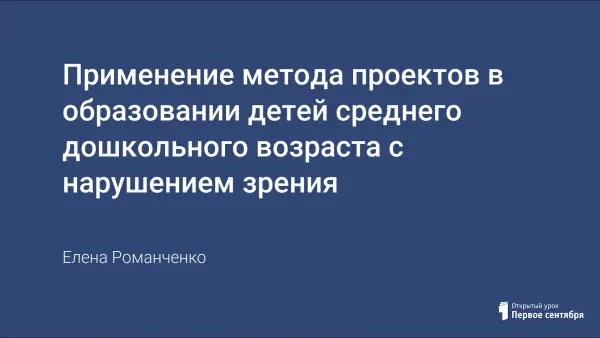 Представленный материал посвящен применению метода проектов в образовании детей среднего дошкольного возраста с нарушением зрения. Применение метода способствует развитию зрительного восприятия, речи, мышления, формированию целостной картины мира.