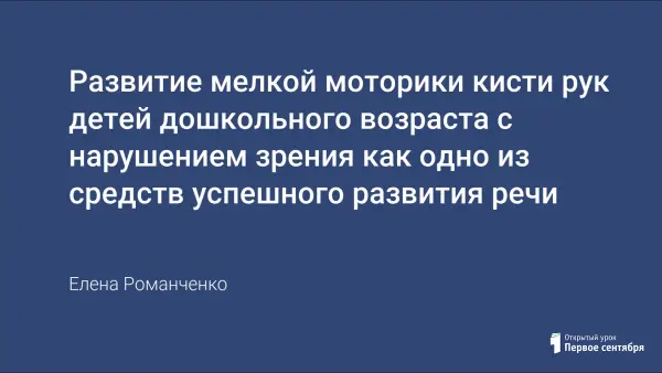 В статье отражена проблема взаимосвязи развития мелкой моторики кисти рук и развития речи детей дошкольного возраста с нарушением зрения. Важными условиями решения данной проблемы является своевременное выявления таких особенных детей и оказания им индивидуальной, специально организованной коррекционно-развивающей помощи.