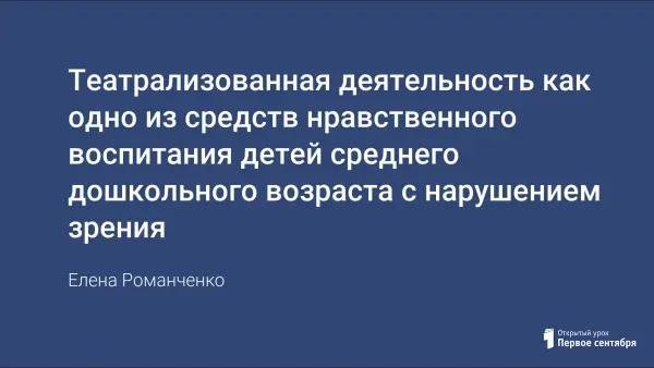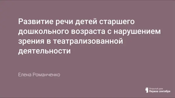 Представлена работа по развитию речи детей старшего дошкольного возраста с нарушением зрения в театрализованной деятельности в соответствии с требованиями ФГОС дошкольного образования.