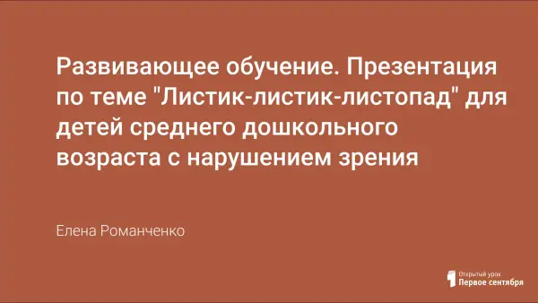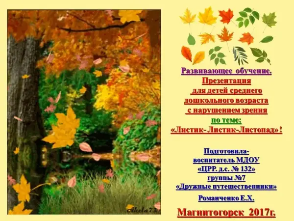 Цель: формировать у детей среднего дошкольного возраста с нарушением зрения представление о явлении природы - «Листопад».