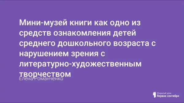 В статье предоставлен опыт организации группового литературно-художественного мини-музея «Книжное Царство» для детей среднего дошкольного возраста с нарушением зрения. Цель: формирование познавательного интереса к литературно-художественным произведениям, сказкам и книгам, в которых их можно найти; развитие навыков взаимодействия с книгой, читательского кругозора, речевой и творческой активности детей.