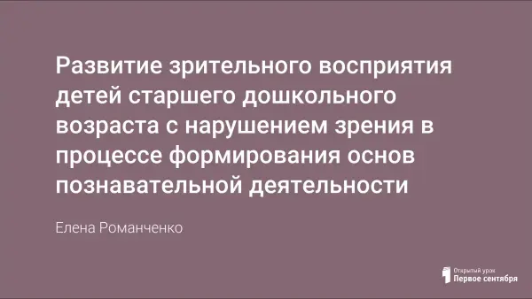 В статье рассматривается проблема развития зрительного восприятия детей старшего дошкольного возраста с нарушением зрения в процессе формирования основ познавательной деятельности. Зрительное восприятие – это сложная системная деятельность, включающая сенсорную обработку визуальной информации, ее оценку, интерпретацию, категоризацию. Основой этой деятельности являются сенсорные процессы, происходящие в зрительном анализаторе.