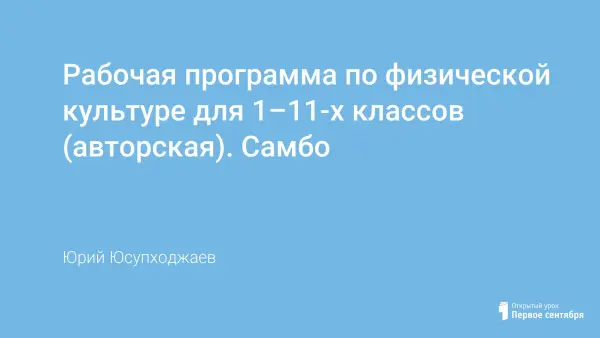 Авторская рабочая программа по предмету «Физическая культура» предназначена для учащихся 1–11-х классов общеобразовательных школ. В работе раскрывается характеристика борьбы самбо в школьной программе, а также учебные планы по всем направлениям подготовки, включая все виды учебной работы со школьниками. Программа разработана с учетом требований ФГОС. Работа предназначена для учителей по физической культуру и будет полезна для студентов педагогических вузов факультетов физического воспитания.