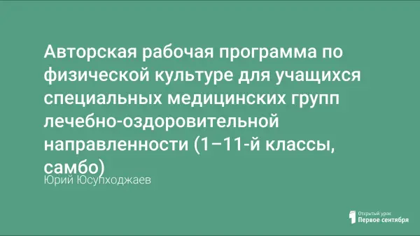 В программе предложена система включения технических элементов и определенных техник борьбы самбо в структуру учебного предмета «Физическая культура» для учащихся 1–11-х классов общеобразовательных школ, по медицинским показаниям входящих в специальные медицинские группы или группы адаптивной физической культуры для детей с отклонениями в состоянии здоровья.