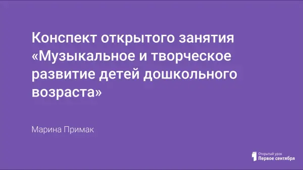Цель занятия: развитие музыкальных и творческих навыков обучающихся 3 года обучения (5–6 лет).