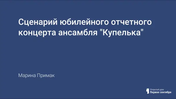Представлен сценарий юбилейного отчетного концерта ансамбля "Купелька" из Иркутской области.