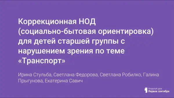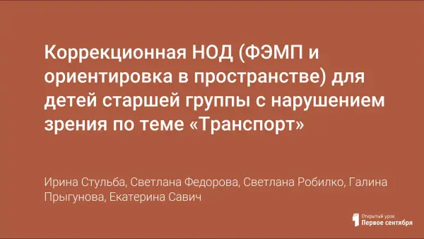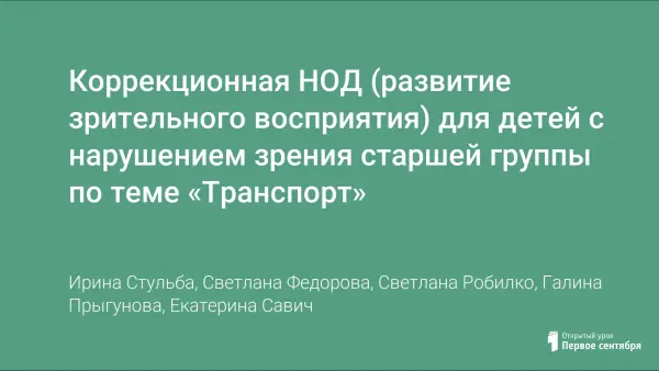 Конспект коррекционной НОД для детей с нарушениями зрения старшей группы, развивающей анализирующее восприятие, глазодвигательные функции, зрительно-двигательный контроль. Цель: формировать у детей обобщающее понятие «Транспорт»; систематизировать представления о видах транспорта и сопутствующих профессиях; уточнять представления о машине (целое и части); тренировать в классификации и сравнение предметов; развивать логическое мышление методом исключения.