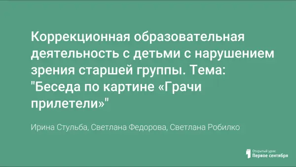 Коррекционная образовательная деятельность с детьми с нарушением зрения старшей группы. Тема: "Беседа по картине «Грачи прилетели»"
