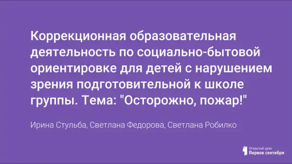 Коррекционная образовательная деятельность по социально-бытовой ориентировке для детей с нарушением зрения подготовительной к школе группы. Тема: "Осторожно, пожар!"