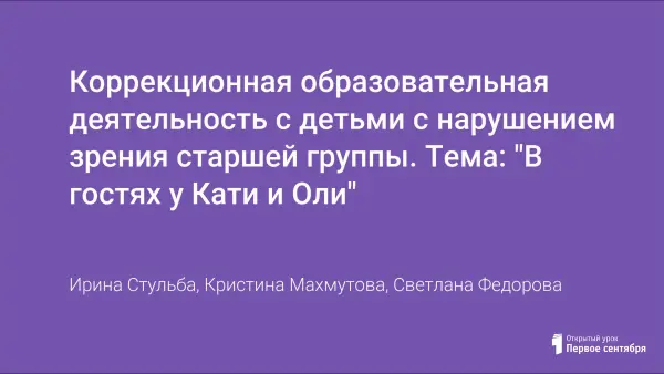 Коррекционная образовательная деятельность с детьми с нарушением зрения старшей группы. Тема: "В гостях у Кати и Оли"