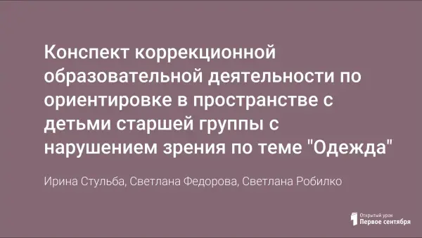 Конспект коррекционной образовательной деятельности по ориентировке в пространстве с детьми старшей группы с нарушением зрения по теме "Одежда"