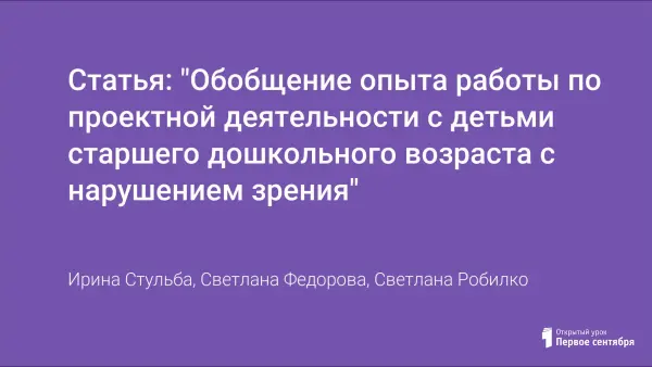 Статья: "Обобщение опыта работы по проектной деятельности с детьми старшего дошкольного возраста с нарушением зрения"