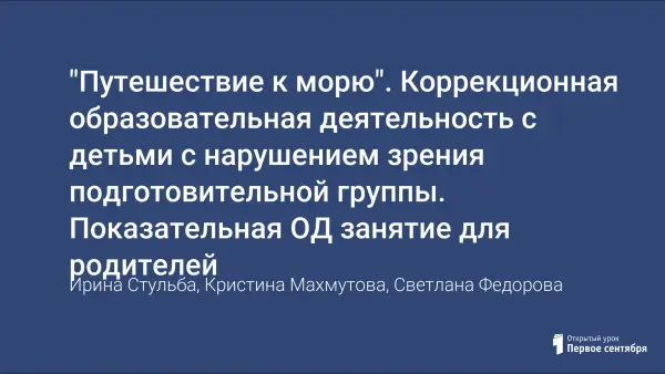"Путешествие к морю". Коррекционная образовательная деятельность с детьми с нарушением зрения подготовительной группы. Показательная ОД занятие для родителей