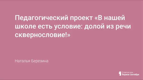 Цель проекта: создание в школьной среде психологически безопасного пространства, свободного от сквернословия.