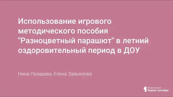 Использование игрового методического пособия "Разноцветный парашют" в летний оздоровительный период в ДОУ
