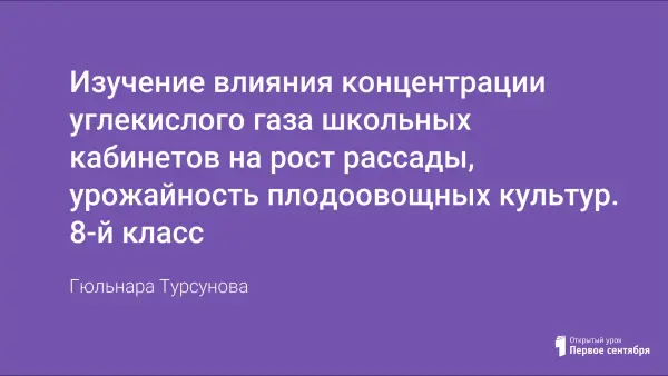 Цель исследования: изучение влияния концентрации углекислого газа школьных кабинетов на рост рассады, урожайность плодоовощных культур: огурцов и томатов.